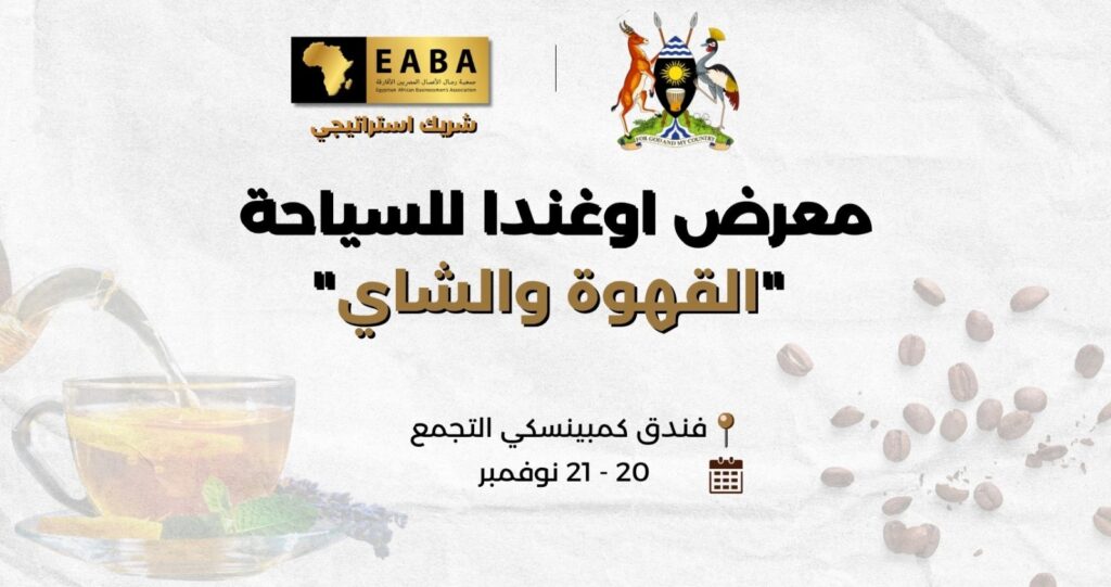 استكمالًا لدورها في دعم التعاون الاقتصادي والسياحي بين مصر والدول الأفريقية، تتشرف جمعية رجال الأعمال المصريين الأفارقة (EABA)، الشريك الاستراتيجي، بدعوتكم للمشاركة في “معرض أوغندا للسياحة – القهوة والشاي”، والذي يُقام بالتعاون مع سفارة جمهورية أوغندا في جمهورية مصر العربية.