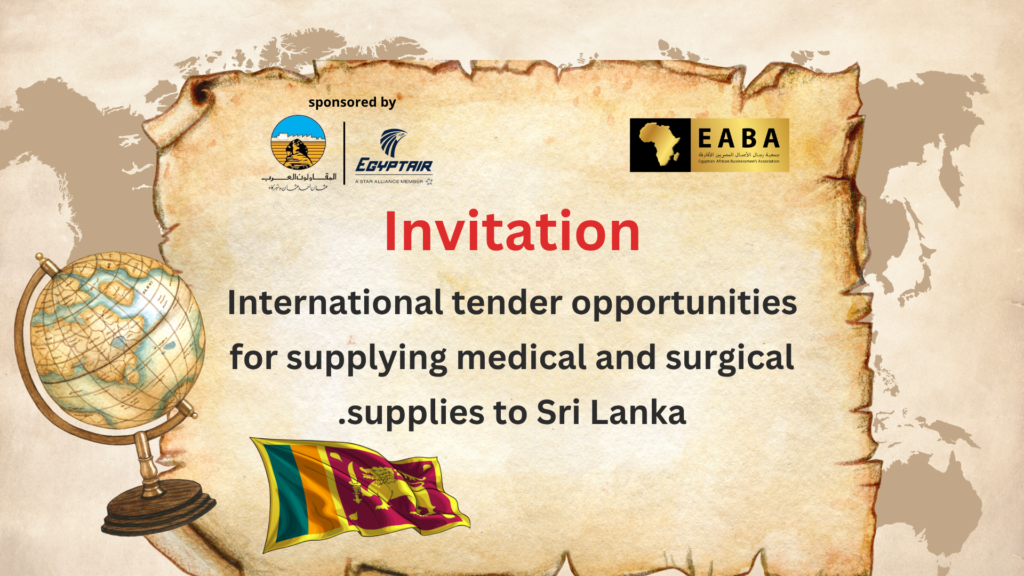 In continuation of the ongoing efforts and the distinguished relations that the Association maintains with its strategic partners, and in its commitment to strengthening cooperation with external entities and opening new horizons for the Egyptian business community, we have received from the Embassy of Sri Lanka an invitation regarding the announcement of several tenders for the supply of surgical supplies by the State Pharmaceuticals Corporation of Sri Lanka. This represents an important opportunity for Egyptian companies interested in expanding into foreign markets and participating in international tenders.
